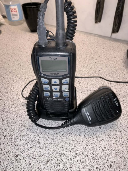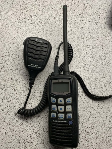VHF Radio. Icom IC-M35 Buoyant med ekstern microfon. Bordlader og radio står som ny. Kan flyde i vand og derfor vandtæt. Pris plus porto 50kr.